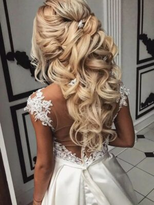 Двумя самыми важными условиями для укладки являются: стойкость волос на протяжении всего мероприятия, так как невеста будет энергично танцевать и участвовать в конкурсах, а второе это конечно сочетание с имиджем обрученной.